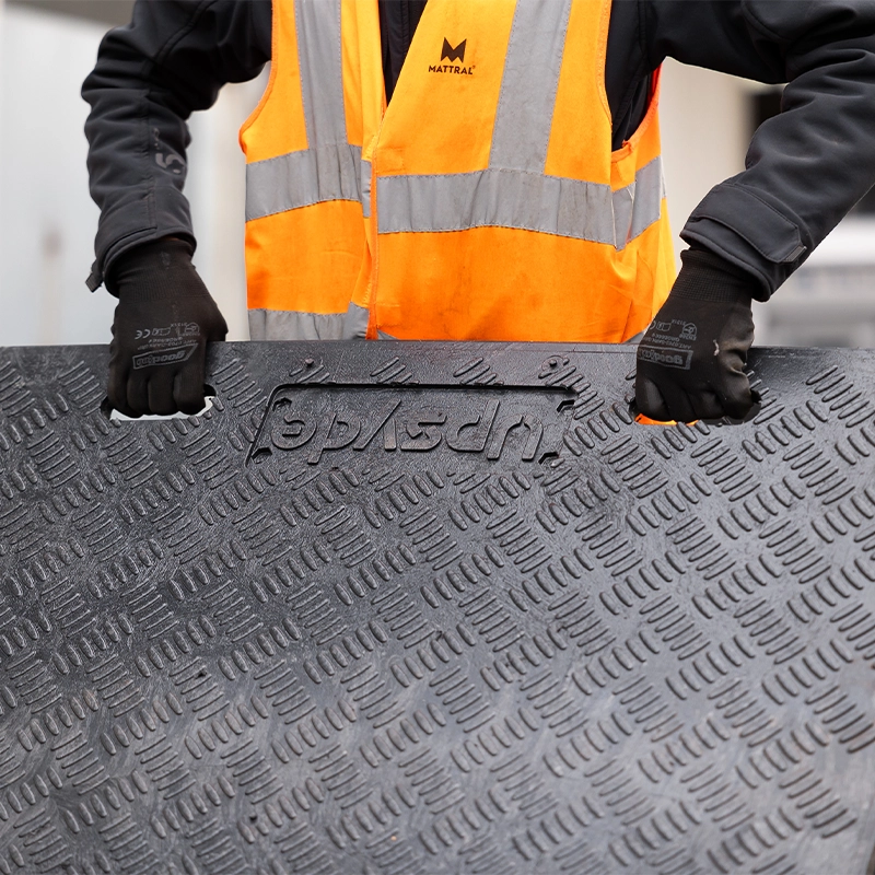 Praktisch, sicher und nachhaltig. Leichter als Stahl, schützen unsere Fahrplatten verschiedene Oberflächen auch unter harten Bedingungen. Die rutschfeste Oberfläche gewährleistet die Sicherheit von Arbeitern, Fußgängern und Fahrzeugen. Unsere Fahrplatten bestehen zu über 95 % aus recyceltem Kunststoff und sind zu 100 % recycelbar.
